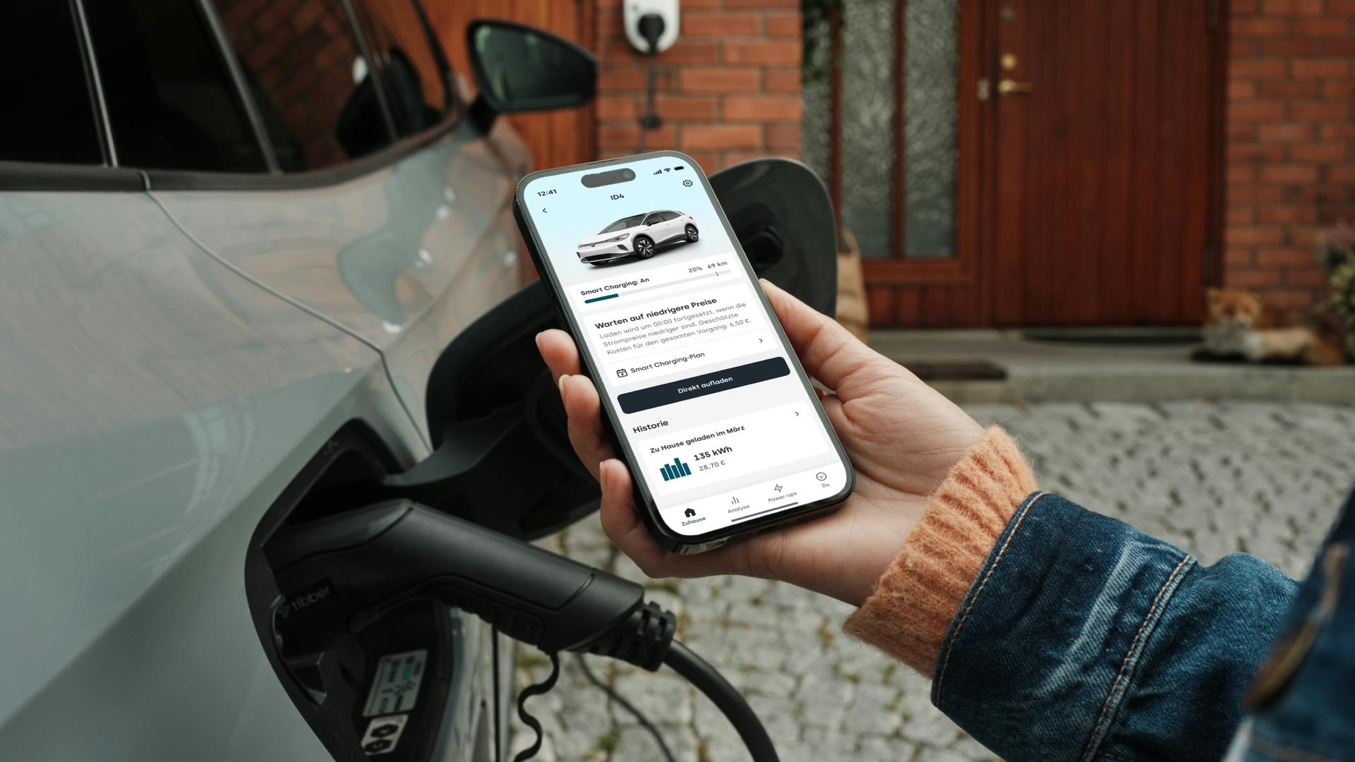 Stattdessen vebindest du dein E-Auto einfach über die App mit Tibber, stellst die gewünschte Abfahrtszeit sowie den angezielten Batteriestand ein und aktivierst Smart Charging. Das war’s auch schon! Der Algorithmus der Tibber App wählt bis zur eingegebenen Uhrzeit dann nur Phasen mit kleinen Kilowattstundenpreisen fürs Laden. Im Schnitt lädst du so 30 Prozent günstiger – was laut Stiftung Warentest Ersparnisse von bis zu 300€ pro Jahr bedeutet.