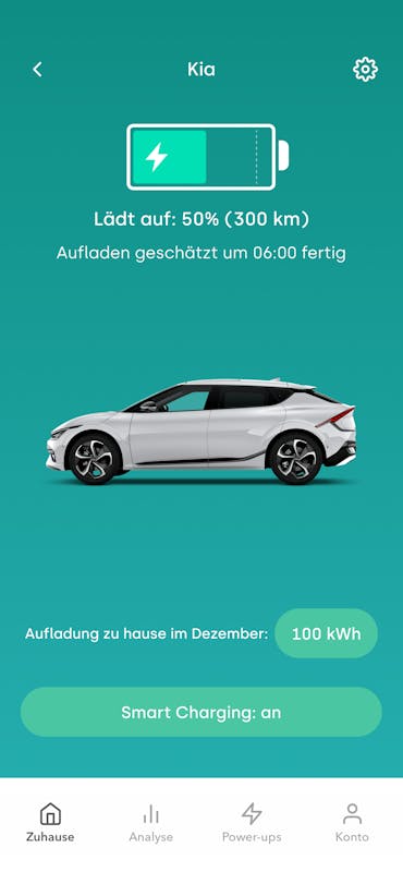Nutze Tibber um deinen Kia optimal laden zu lassen. Tibber steuert das Laden deines Autos automatisch zu den niedrigsten Preisen des Tages. Außerdem zeigt dir die App den Batteriestatus und Ladeverlauf des Fahrzeuges.